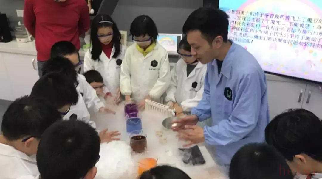 還有專門從臺(tái)灣請(qǐng)來(lái)老師團(tuán)隊(duì),進(jìn)行樂研科學(xué)實(shí)作教育。讓孩子們?cè)谕嫠V?,就了解到大氣壓力、表面張力、三原色的奧妙