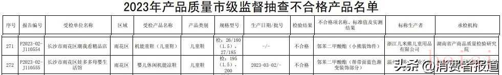 例如2024年3月,長沙市市場監(jiān)督管理局發(fā)布167種產(chǎn)品質(zhì)量監(jiān)督抽查情況的公示,1批次標稱由“浙江幾米熊兒童用品有限公司”生產(chǎn)的機能童鞋(兒童鞋)不合格,不合格項目為鄰苯二甲酸酯(小熊裝飾件)。