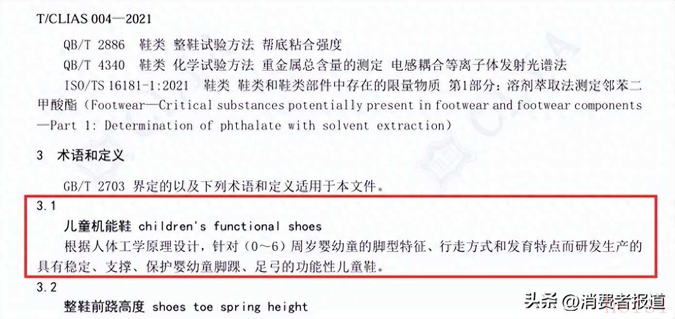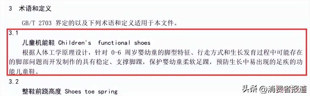 ▲團體標準《兒童機能鞋》定義,下面為征求意見稿