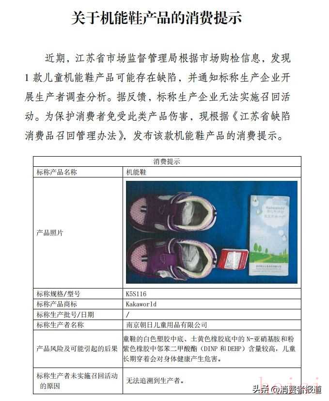 2023年5月,江蘇省市場監(jiān)督管理局就因為1款機能鞋中的鄰苯二甲酸酯等含量較高,生產(chǎn)企業(yè)無法實施召回,發(fā)布《關于機能鞋產(chǎn)品的消費提示》。