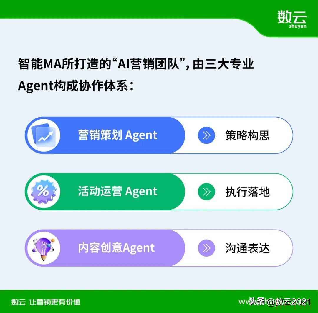智能MA所打造的“AI營銷團(tuán)隊”,由三大專業(yè)Agent構(gòu)成協(xié)作體系: