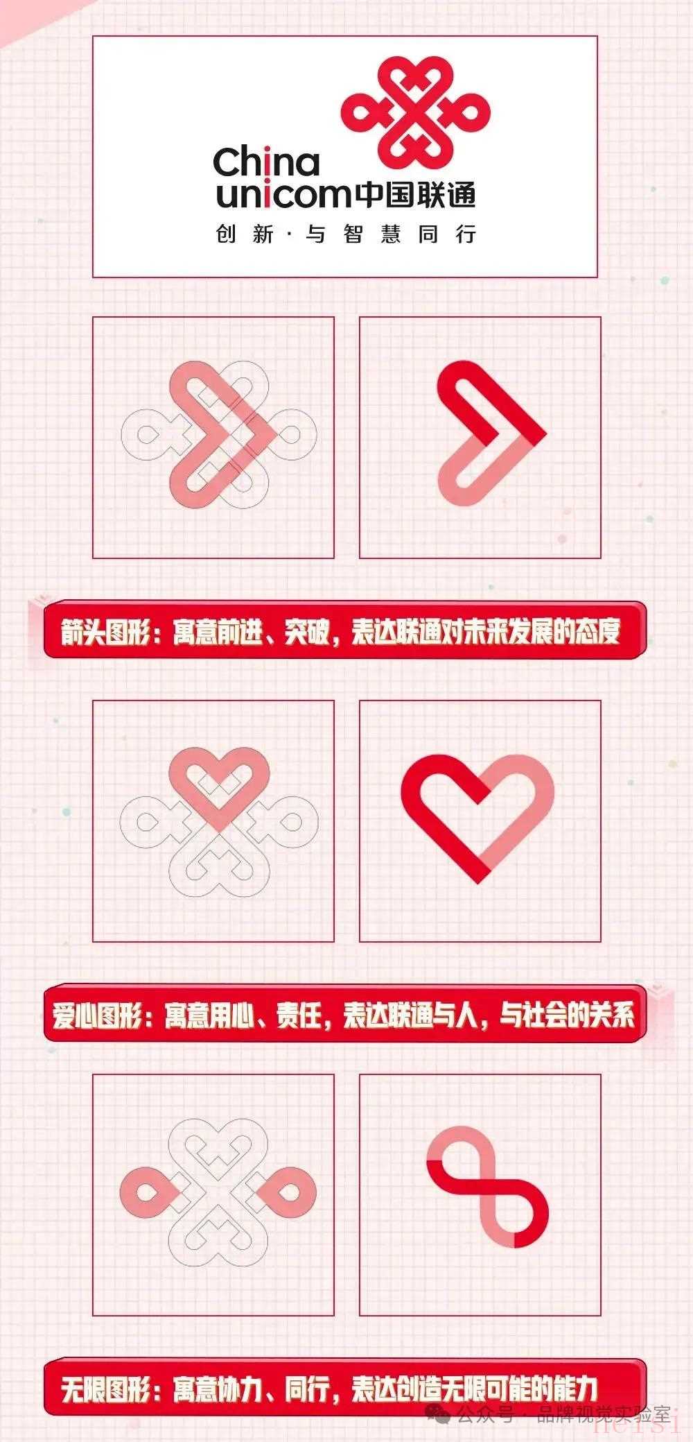 中國聯(lián)通中國聯(lián)通有兩個標(biāo)志,舊標(biāo)志由兩個色彩鮮艷的圓環(huán)組成,一個圓環(huán)為紅色,另一個圓環(huán)為藍色,兩個圓環(huán)相互交叉 。新標(biāo)志采用對稱結(jié)構(gòu)的中國結(jié)圖案,結(jié)合全新色彩元素,品牌名稱“UniCom”的設(shè)計采用黑色與紅色的配色方案。舊標(biāo)志中紅色代表激情和活力,藍色代表專業(yè)性和穩(wěn)定性。新標(biāo)志中明亮紅色象征著活力和希望。舊標(biāo)志中兩個圓環(huán)相互交叉,表達了中國聯(lián)通在通信領(lǐng)域中不斷創(chuàng)新、追求卓越的精神。新標(biāo)志的中國結(jié)圖案象征著人與人之間的聯(lián)系和長期關(guān)系的維持,“UniCom”的“Com”部分既代表Communication(通信)、Computation(計算),也代表Community(社區(qū)),反映出中國聯(lián)通在全球化背景下的多元化發(fā)展理念。