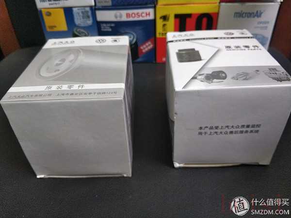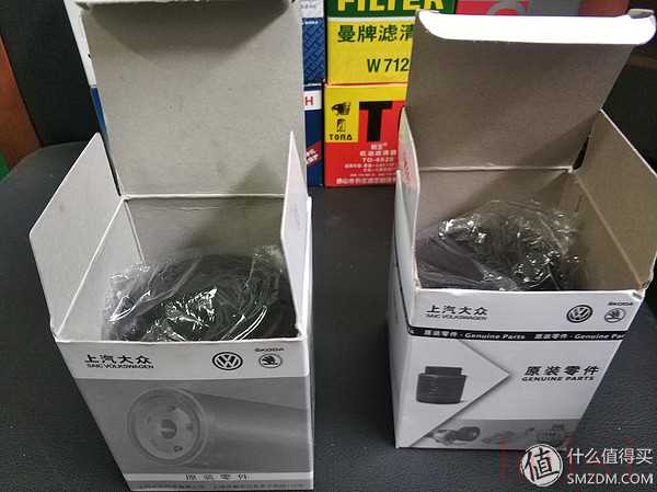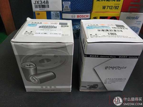 以下為開箱,左邊那個是京東購入原廠機(jī)濾,右邊那個是4S店流出的原廠機(jī)濾。下圖中位置一樣。