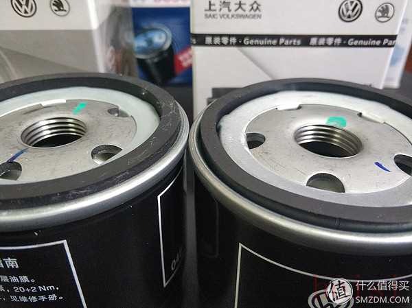 兩塊機(jī)濾做工和材質(zhì)沒有明顯區(qū)別,細(xì)節(jié)上也都一樣。比如兩個機(jī)濾都有藍(lán)綠色標(biāo)記。進(jìn)油孔為5個。