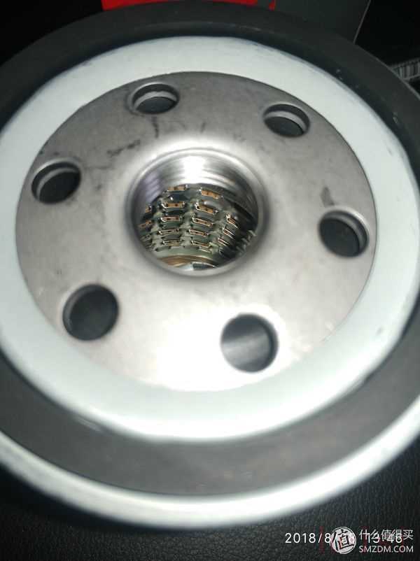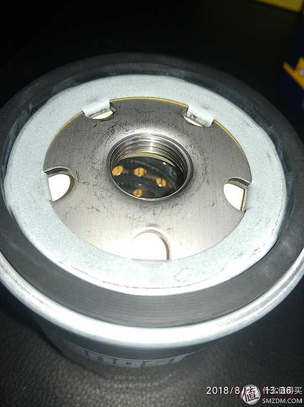 黑色濾芯印著白色的的字,字跡較清楚。意外的是口上有塑料膜,良心了一把,強(qiáng)迫癥就是注意這些細(xì)節(jié)的東西。進(jìn)油孔為四個,天真的我其實認(rèn)為進(jìn)油孔越多越大越好。
