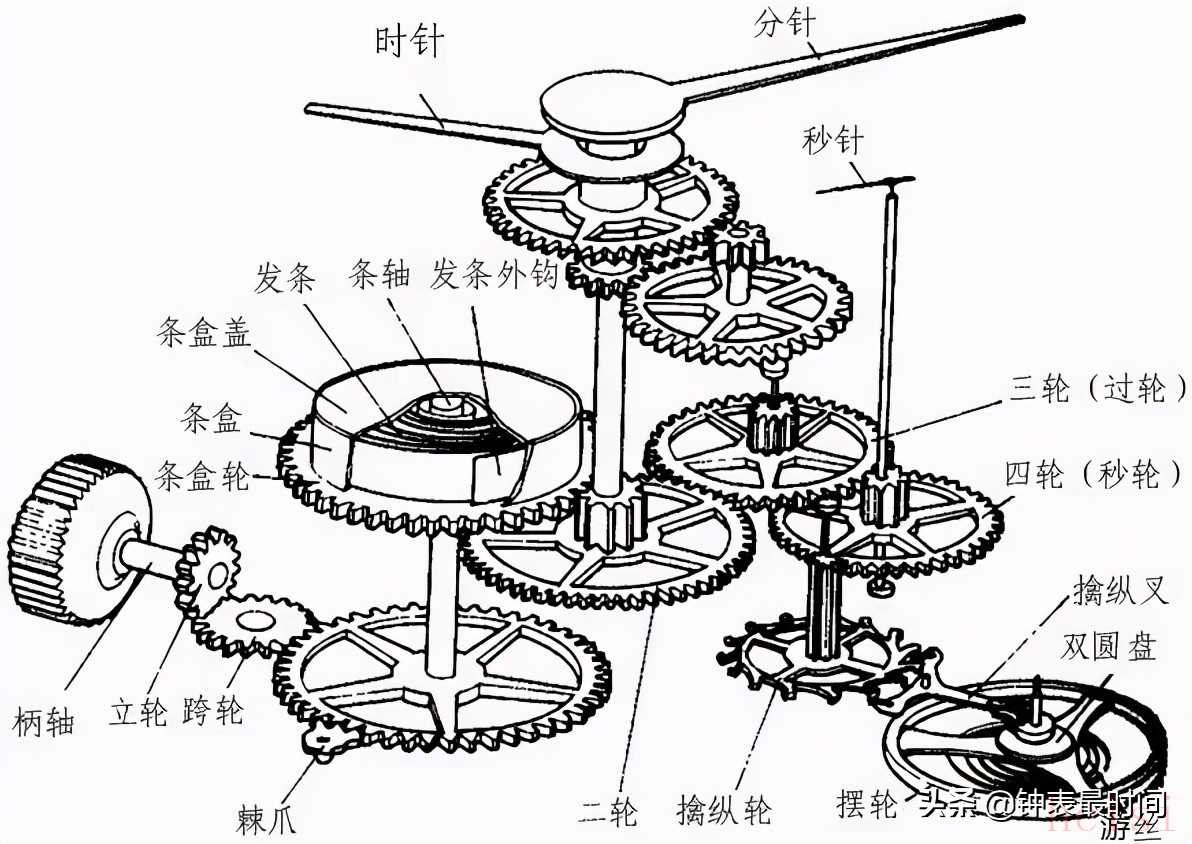 ▲手表機(jī)心的構(gòu)成(手動(dòng))機(jī)械表 Mechanical watch