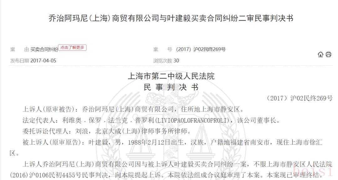 此前,據(jù)中國裁判文書網(wǎng)2017年公布的有關喬治阿瑪尼(上海)商貿有限公司(以下簡稱“阿瑪尼”)的民事判決書顯示,阿瑪尼因銷售不合格 “牛皮”包構成欺詐被判退一賠三。