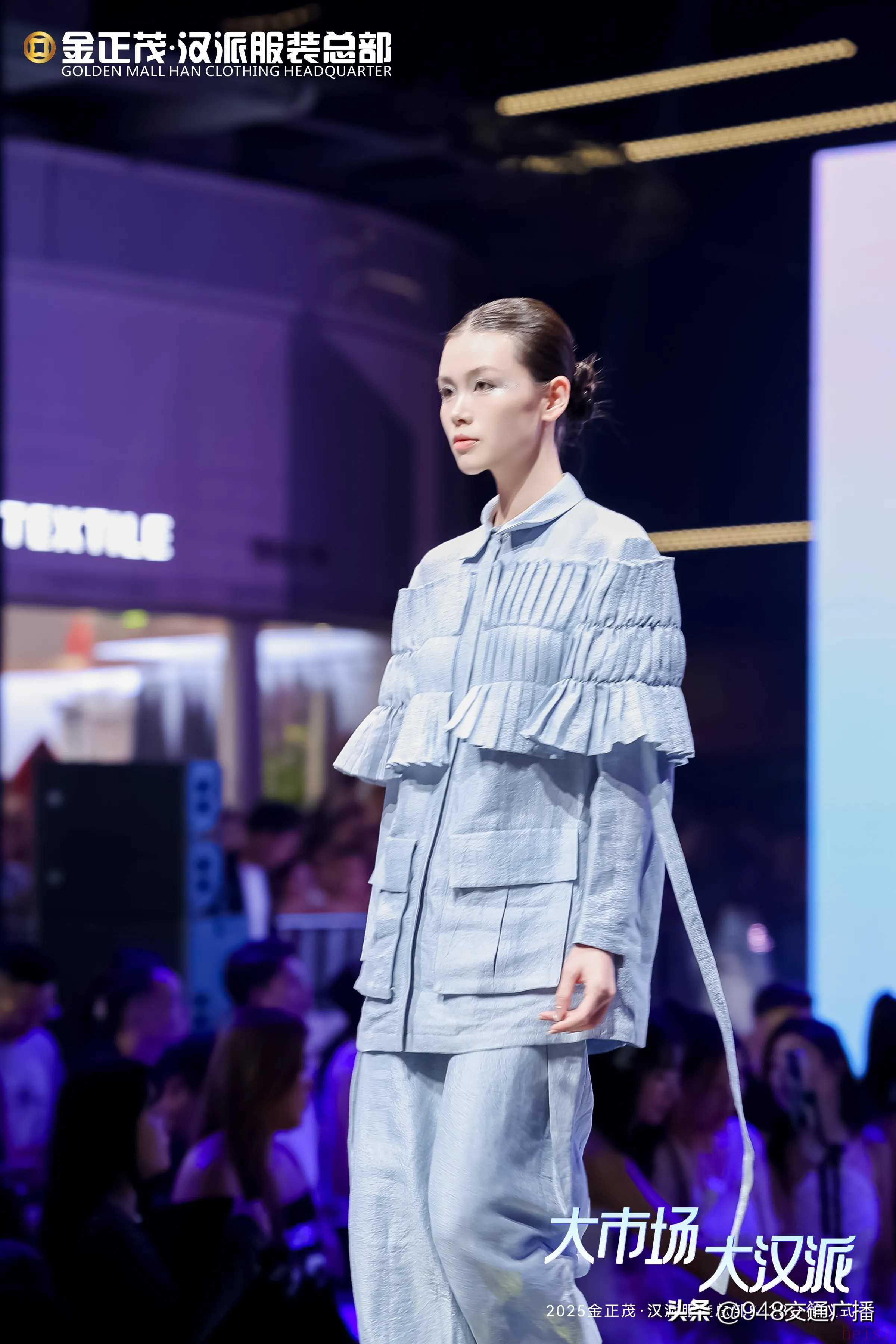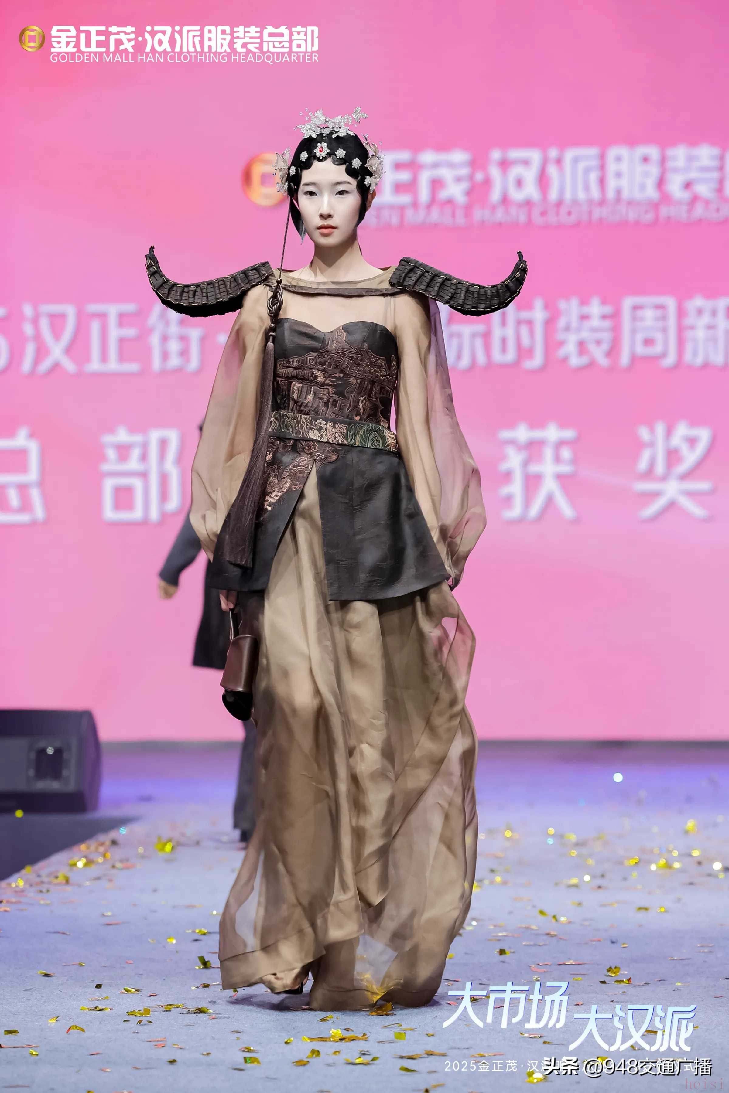 晚會(huì)現(xiàn)場,第24屆中國十佳設(shè)計(jì)師余倩攜其品牌WhiteFog,聯(lián)合歌純、張揚(yáng)時(shí)代、六悅柒、月亮女神、柏之芮兒、ZHP、聚·有米、鑫爆米花等8家漢派原創(chuàng)女裝品牌,呈現(xiàn)一場融合楚漢文化與創(chuàng)新設(shè)計(jì)的秋冬新品發(fā)布大秀,以設(shè)計(jì)語言重釋漢派時(shí)尚內(nèi)涵。同時(shí),2025漢正街·武漢國際時(shí)裝周“新漢派服裝設(shè)計(jì)大賽”獲獎(jiǎng)作品秀驚艷亮相,總部市場3家原創(chuàng)品牌于T臺秀出其獲獎(jiǎng)力作。時(shí)此外,來自總部市場一樓“時(shí)尚褲裙中心”的13家實(shí)力褲裙品牌——鑫·玉林、心語洺揚(yáng)、鑫鑫宏帆、典典紅、米蘭秀、愛順米、雅詩貝妮、鑫爽歪歪、鎂格妮斯、裙舞美伊、艾米迦、歐米侖、千邦麗聯(lián)袂登場,以精湛工藝與前沿設(shè)計(jì)展現(xiàn)漢派褲裙的獨(dú)特魅力。