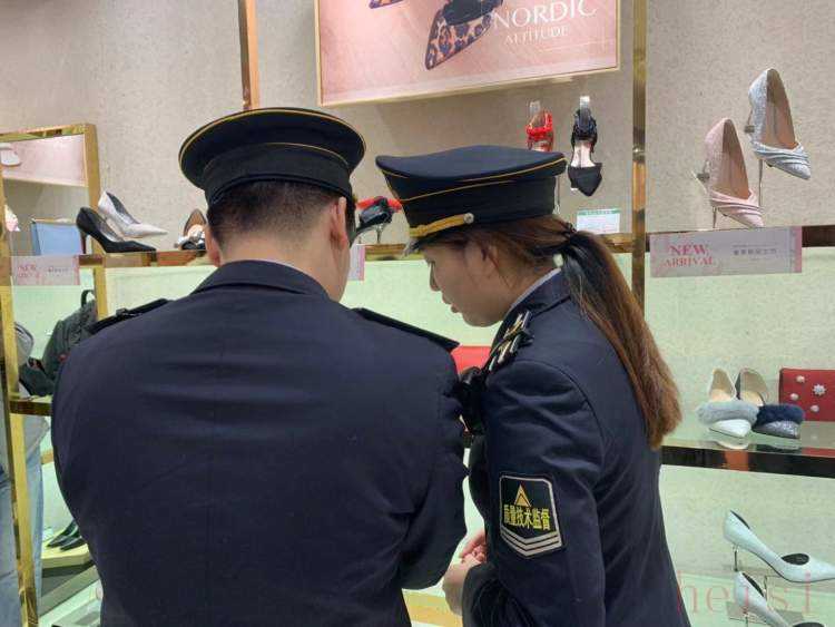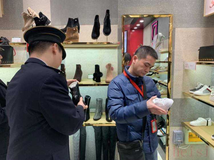 今天上午,記者跟隨上海市市場(chǎng)監(jiān)管局執(zhí)法人員前往位于徐家匯商圈的匯金百貨商場(chǎng)進(jìn)行了皮鞋質(zhì)量抽查,抽檢內(nèi)容主要包含鞋跟硬度、幫底剝離強(qiáng)度、甲醛含量等。結(jié)果,在兩家品牌鞋店中檢出6款皮鞋不合格,涉嫌問(wèn)題產(chǎn)品共43雙,涉嫌貨值總金額為2萬(wàn)5千余元。