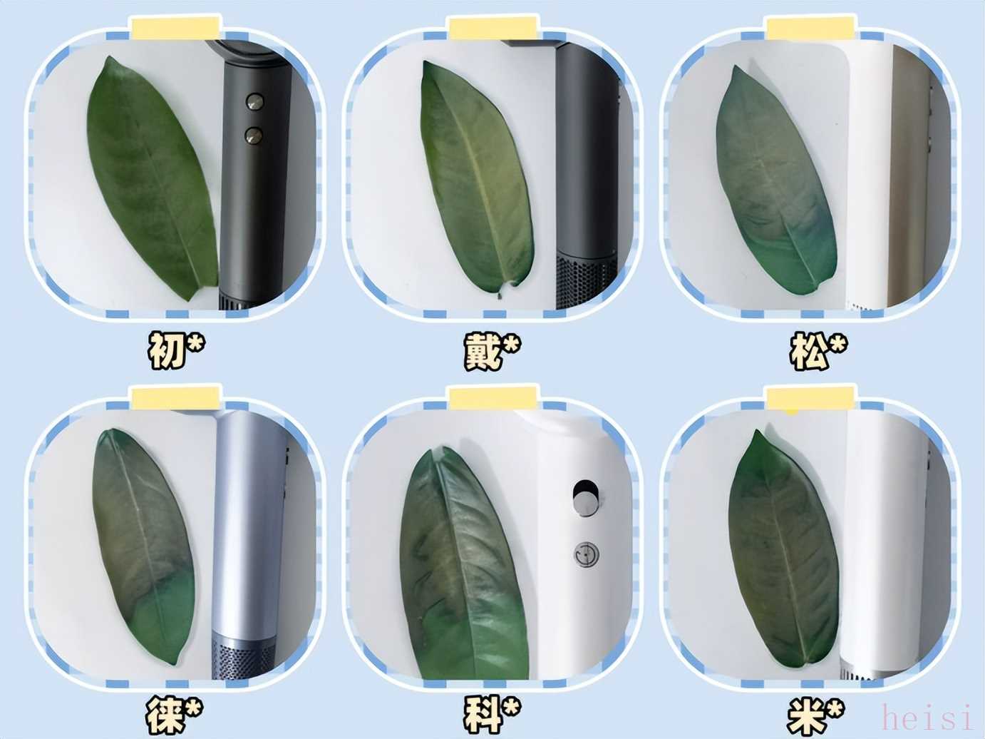測評過程:使用高速吹風機把葉子水分吹干,對比葉子表面的保鮮程度。