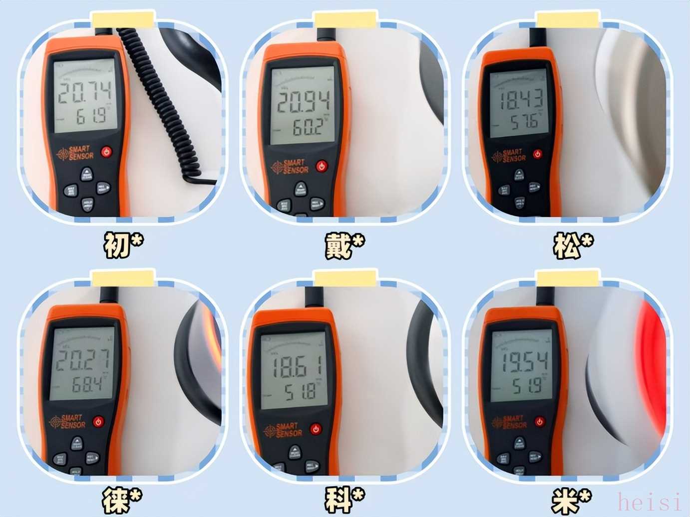 實測風速普遍在19m/s以下,短發(fā)吹干甚至要2分鐘以上,更不用提濃密的長發(fā)了,而且部分機型智能溫控系統(tǒng)不是非常靈敏,出風口溫度波動大,吹干后發(fā)絲含水量會明顯下降。