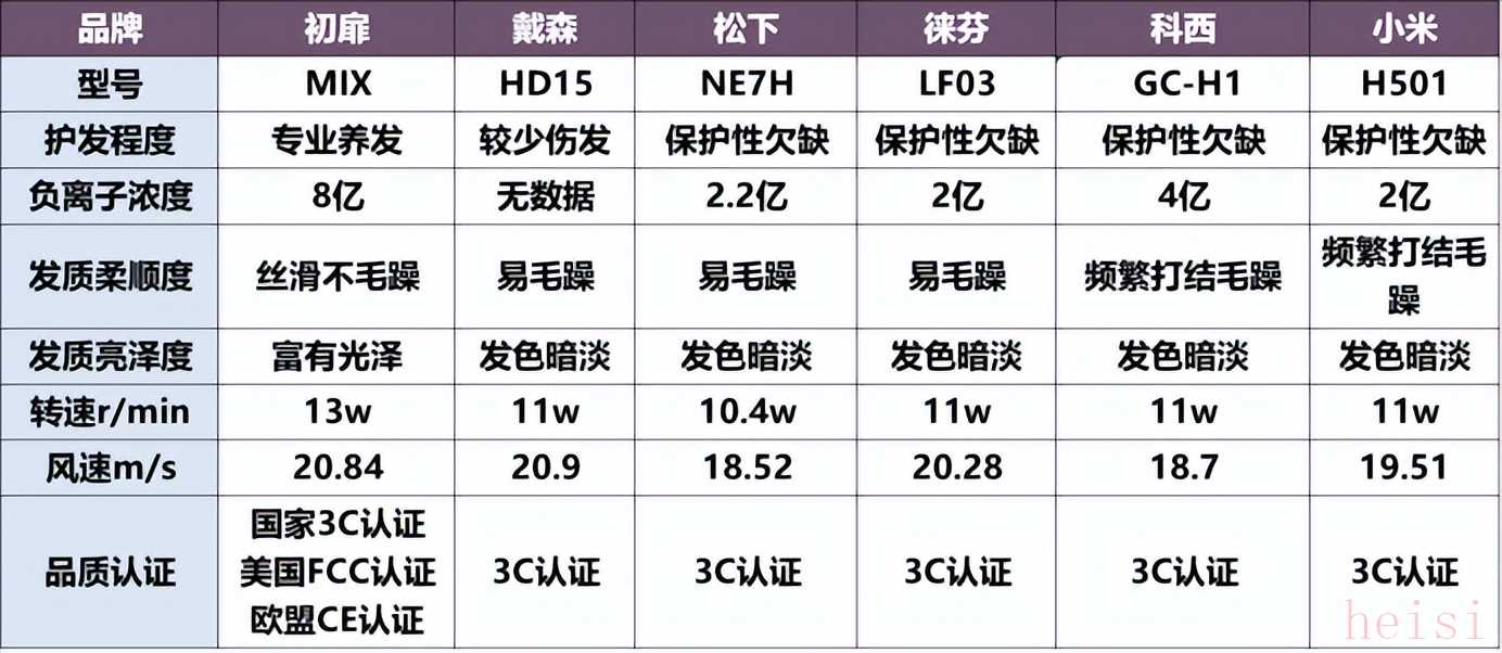 ▍本期高速吹風機推薦測評到這里已經(jīng)結束了,給大家整理下本次測評的完整數(shù)據(jù):