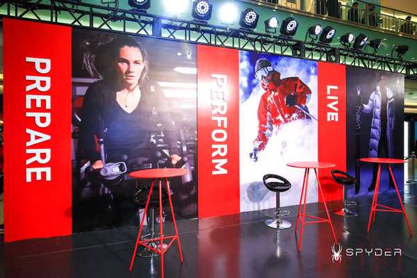 發(fā)布會現(xiàn)場以黑白紅品牌色做為主色調(diào),整體呈現(xiàn)出時(shí)尚科技的視覺效果,以SPYDER品牌理念——PREPARE(備戰(zhàn)), PERFORM(競技), LIVE(生活)作為主看板的品牌區(qū),講述了SPYDER品牌PPL生活理念,因滑雪而生的品牌基調(diào),關(guān)注雪服科技的探索與研發(fā)的同時(shí),為專注健身運(yùn)動和提升生活品質(zhì)的城市人群提供符合當(dāng)代審美和極具功能訴求的產(chǎn)品。倡導(dǎo)人們盡情享受運(yùn)動為生活帶來的愉悅感。一年的365天,每個(gè)滑雪愛好者都在準(zhǔn)備PREPARE, 詮釋/PERFORM, 演繹LIVE著自己選擇的生活。從奧林匹克運(yùn)動員到戶外運(yùn)動達(dá)人、健身愛好者,他們對每一次運(yùn)動都飽含著相同的熱情和動力。適應(yīng)多種運(yùn)動、多個(gè)季節(jié),SPYDER 始終堅(jiān)持PREPARE, PERFORM, LIVE的品牌理念為運(yùn)動家們提供最專業(yè)的支持。