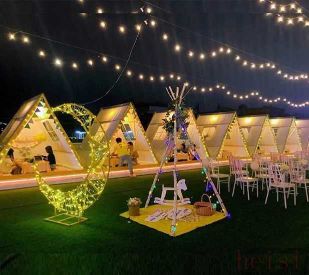 從一個人的寧靜到一群人的狂歡,往往只需要一點(diǎn)契機(jī),而“星巢”露營地就是這么一個契機(jī)。星巢露營區(qū)占地10000平方米。主打休閑餐飲,共設(shè)置11頂三角形帳篷。帳篷旁邊擺放著燒烤架、夾子、叉子等,可供游客燒烤。