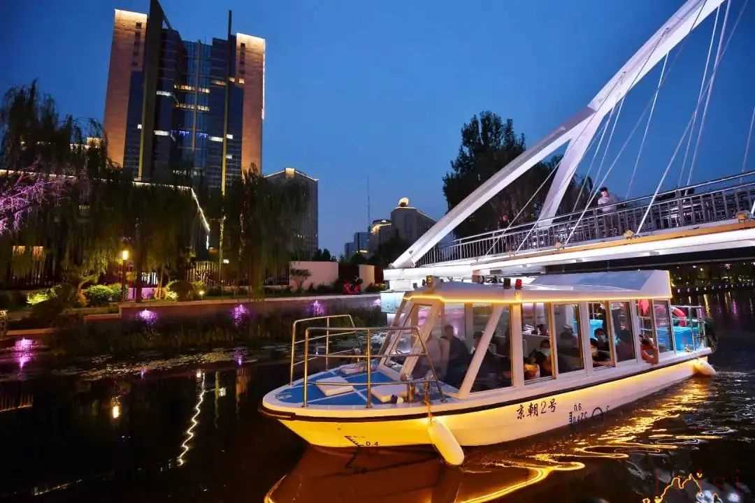 乘船夜游打卡點(diǎn)包括:星河·鉑宮船閘演繹、流螢·朝陽公園路橋、留聲·退水渠橋北、蝶舞·退水渠橋南、萬象·貝殼劇場等。