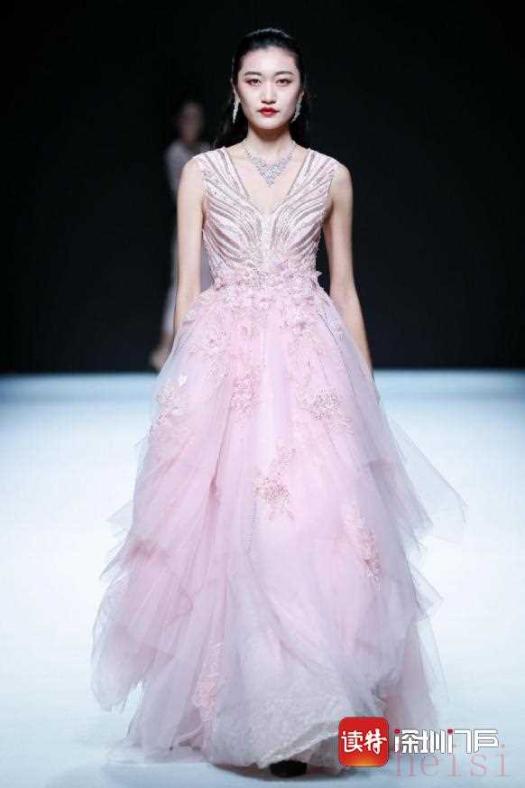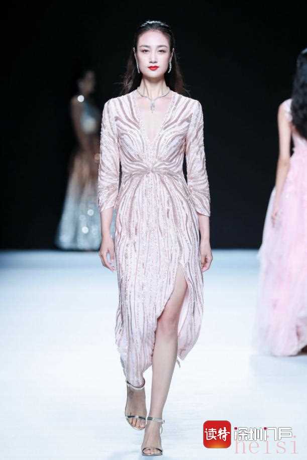 首先登場(chǎng)的CHLOSIO克勞西極致純手工禮服系列。以海洋、星空、花卉、動(dòng)物等為自然元素組合以及夢(mèng)幻般的視覺隱喻展現(xiàn)出不同藝術(shù)手法對(duì)生命力的熱愛。繁雜的釘珠和印花、奧利地施華洛世奇燙鉆與閃光珠片、絲綢上縫制的羽毛和皮草,這些服裝細(xì)節(jié)源于中國(guó)傳統(tǒng)工匠對(duì)每件作品平均歷時(shí)300個(gè)工時(shí)的純手工打造,這也正是克勞西一直所堅(jiān)持的匠心精神。