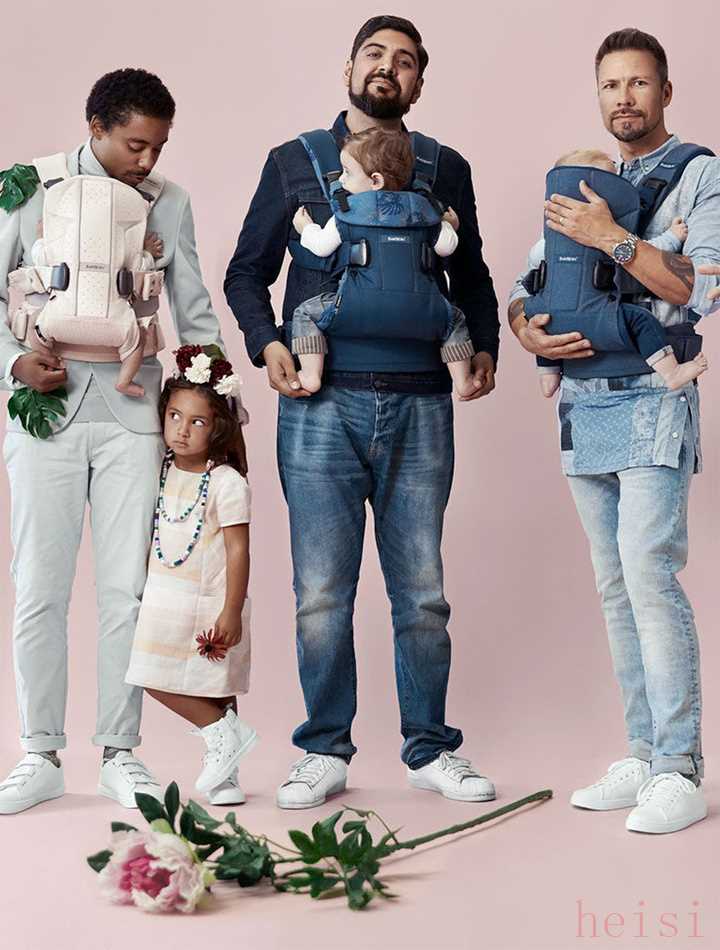 世界上第一個售賣商業(yè)化帶娃裝的品牌,拍廣告首選爸爸,而不是媽媽。如果是爸爸和媽媽同時上鏡,背著嬰兒的也會是爸爸。