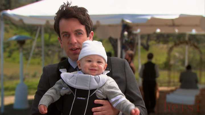 ▲美劇《辦公室》第 9 季中的 BabyBj?rn 嬰兒背帶