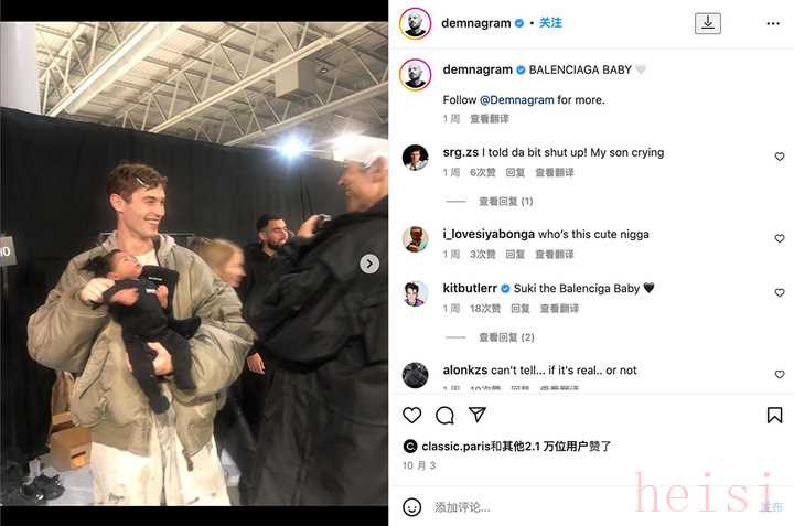 雖然后臺花絮沒有看到太多他的帶娃照,但他對這個兒子是真愛——走完秀之后,這個小孩照片成了他的 Instagram 頭像。