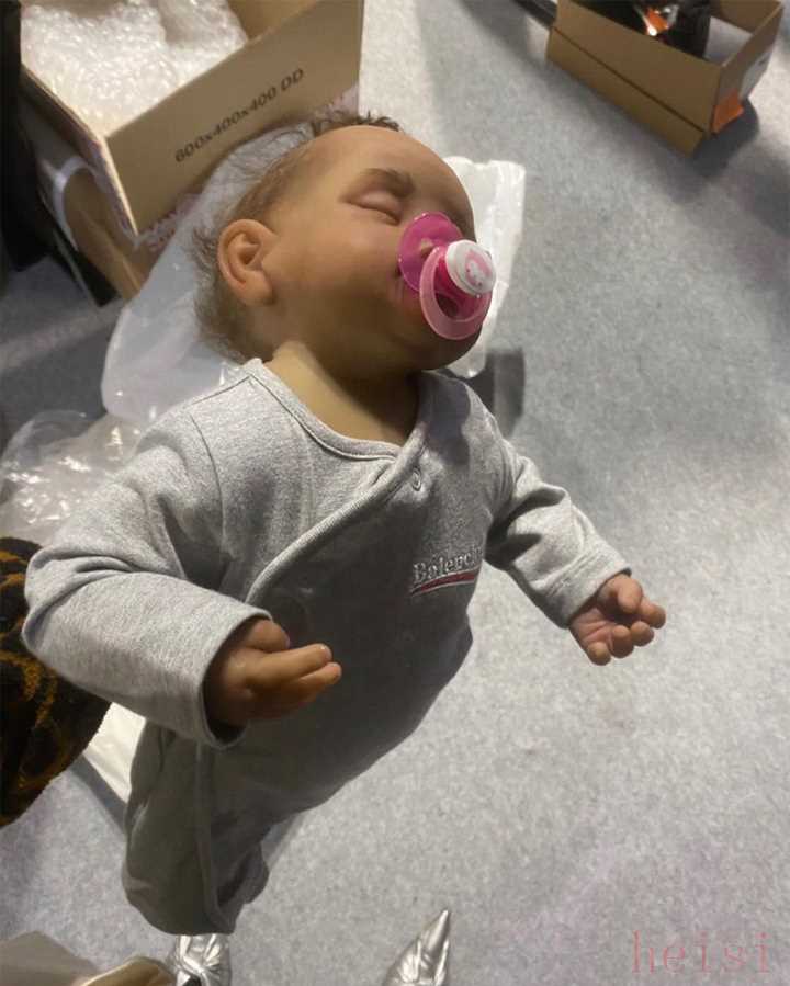剛剛的「它」并不是錯別字,原因在于這些小嬰兒都不是真娃娃,而是巴黎世家特別定做的仿真娃娃,頭發(fā)、五官、手腳都做的十分逼真,還為他們量身定制了正面繡有巴黎世家 logo 的小衣服。