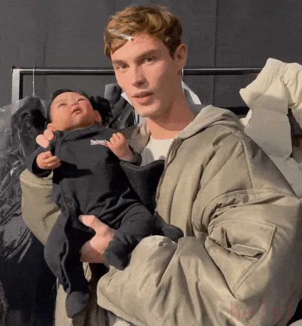 ▲ 抱著 Balenciaga Baby 的 Crosby Studios 創(chuàng)意總監(jiān) Harry Nuriev. 圖片來自:Instagram @harrynuriev