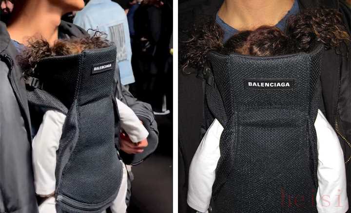 Kit Butler 這一整套帶娃裝扮,是這回巴黎世家的主推,還請了模特專門拍了 Lookbook 照片。帶娃用的黑色嬰兒背帶,成為這套搭配的點睛之筆。