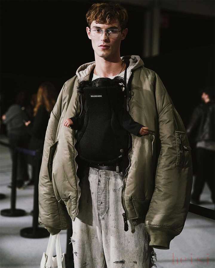 Twitter 男性網(wǎng)友 @donafella 看完秀立馬發(fā)推文說:「我想要一個孩子的原因有了,我要用上巴黎世家的嬰兒背帶?!?/span>