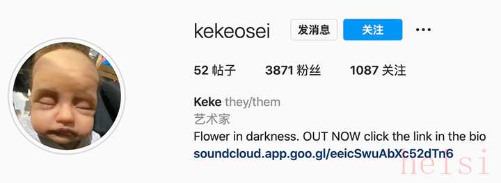 與 Kit 一起拍帶娃裝扮的 Keke Osei 還是位很有才華的音樂人,有自己的專輯。