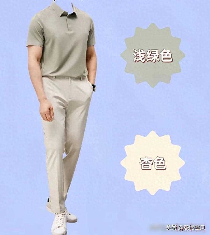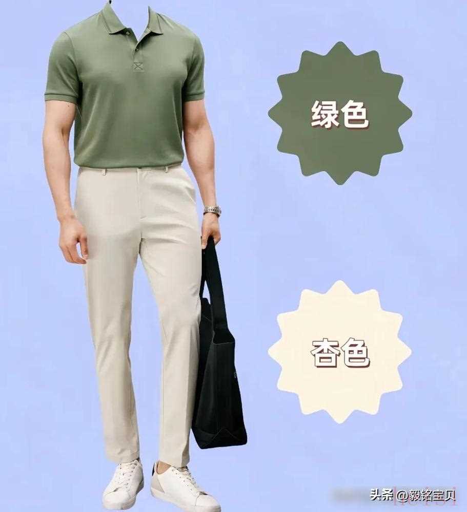 參考身邊那些被夸“有品味”的大叔,他們的衣柜里很少有熒光色、大紅色這些“炸眼款”。黑色、白色像定海神針,搭卡其褲利落,配亞麻襯衫清爽;杏色像塊暖色調的濾鏡,西裝搭同色西褲,溫柔又不軟塌;淺綠更妙,Polo衫配白褲子,周末去公園遛彎,比一身黑少了份嚴肅,多了點鮮活。這些顏色不搶戲,卻能把“成熟”二字襯得剛剛好。