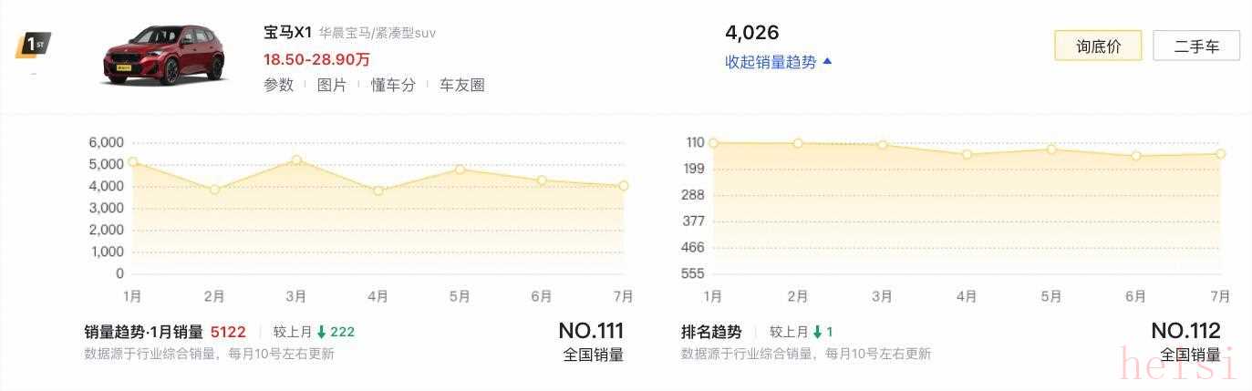 寶馬X1定位為緊湊型SUV,其競爭對手包括奧迪Q3/Q3 Sportback(指導價分別為25.18萬元起和26.38萬元起)、奔馳GLA/GLB(指導價分別為29.99萬元起和31.19萬元起)。根據(jù)懂車帝銷量排行榜顯示,今年7月寶馬X1的銷量為4026輛。關于寶馬品牌的更多消息,懂車帝將持續(xù)關注。