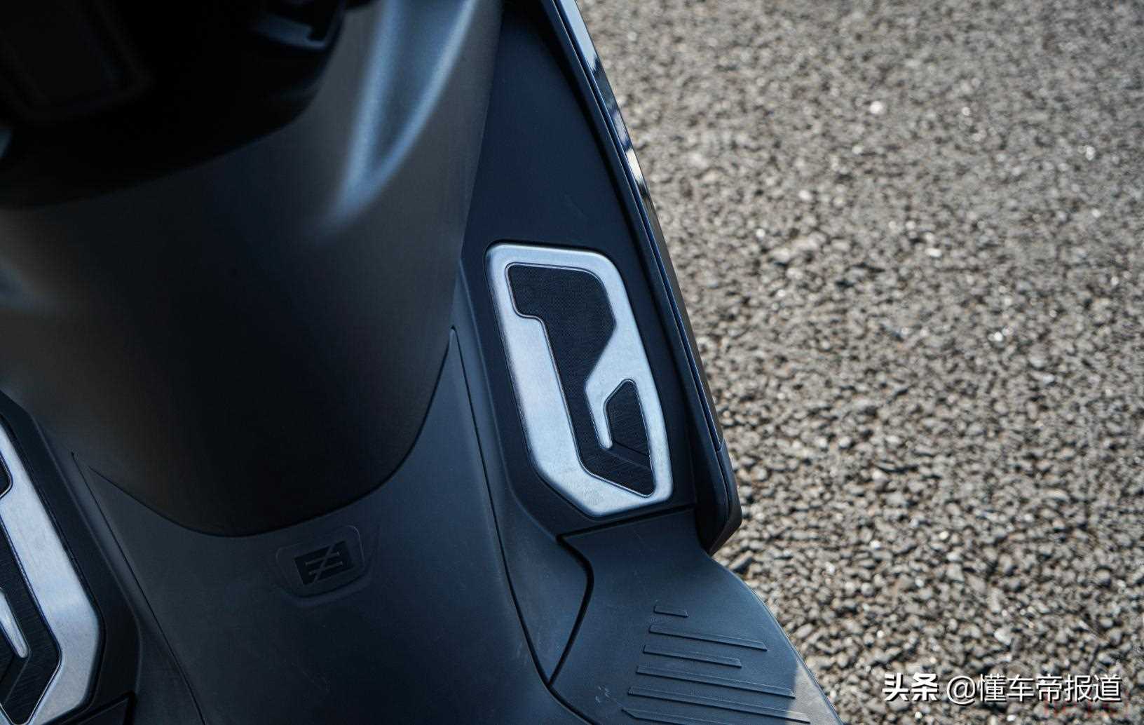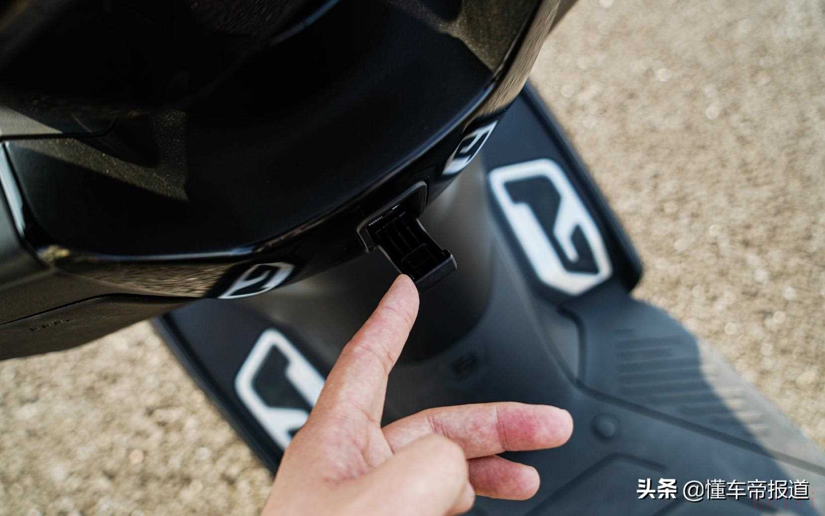 腳踏位置設(shè)置有防滑墊,保證了美觀的同時也增強了實用性,同時作為一款“踏板車”,掛鉤是必不可少的,這就像是汽車的手套箱,屬于必要的配置。