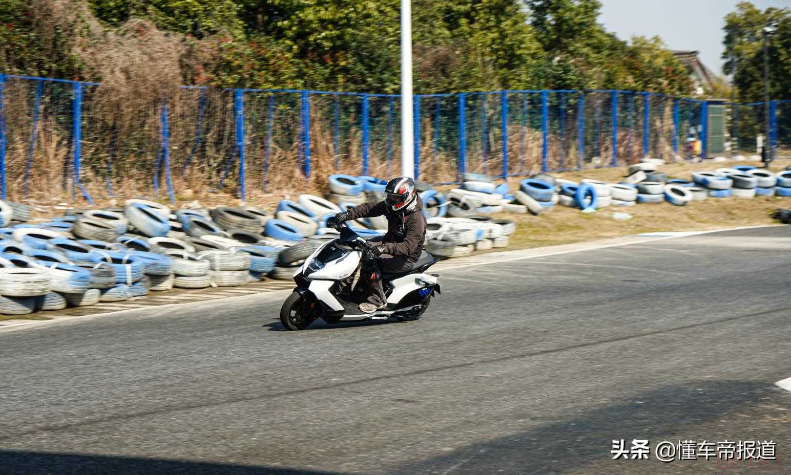 雖然車輛體型不大,但避震支撐效果表現(xiàn)出色,筆者體重超過100公斤,在快速過彎時,也能明顯感受到避震系統(tǒng)的支撐力度。此外,新車操控靈活,在“翻身彎”的位置,車輛重心轉(zhuǎn)移變化迅速且穩(wěn)定,即便是新手駕駛,也不用感到恐慌,騎行幾圈下來,便能夠達到“一手掌握”的程度。