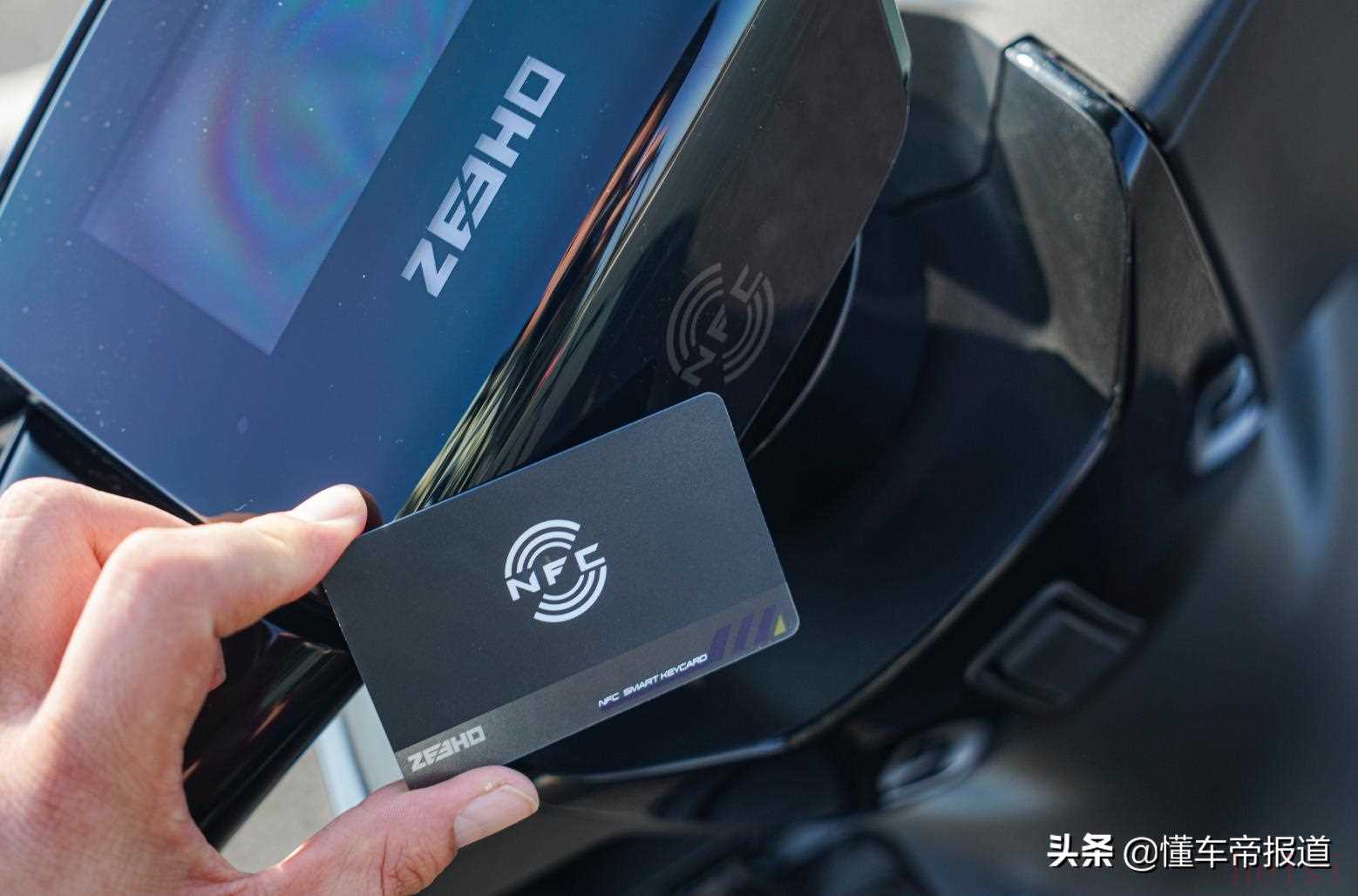 新車支持NFC卡片感應啟動,不再需要擰鑰匙的動作,掏出卡片即可完成解鎖、啟動。此外,還可以使用App遠程解鎖和手機藍牙近場解鎖,便利程度很高。