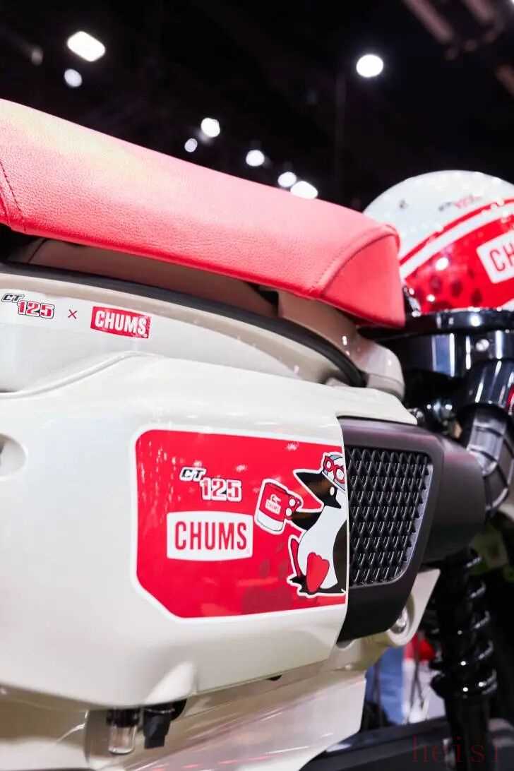 2. "本田CT125 X Chums 聯(lián)名版 (Honda CT125 X Chums Limited Edition):" 這指的是本田經(jīng)典的CT125摩托車與潮流品牌Chums合作推出的特別版車型。Chums通常以其街頭、滑板、潮流文化相關(guān)的設(shè)計(jì)而聞名。