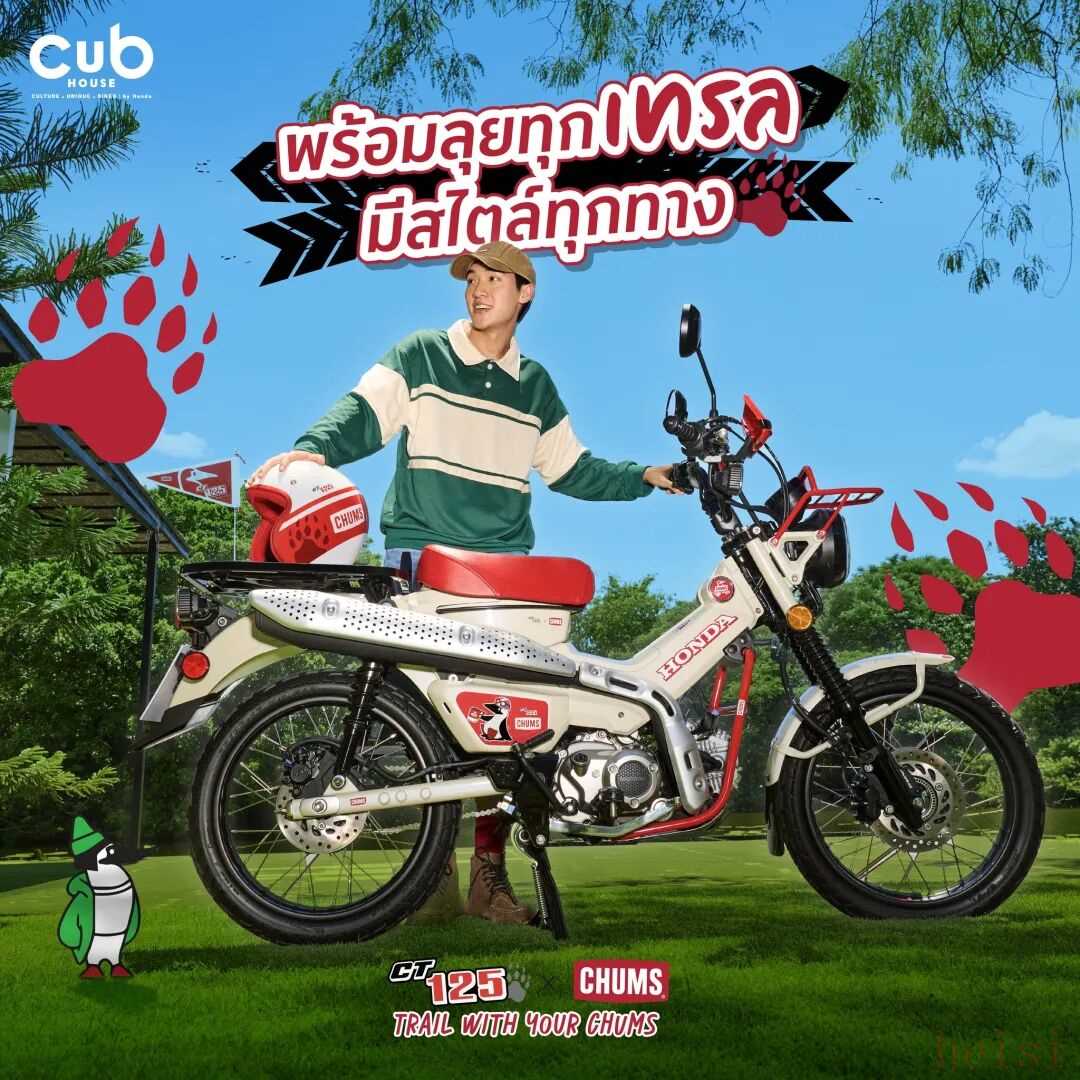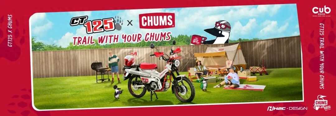 最喜歡搞改裝和聯(lián)名款的泰國Honda CUB House又有新的聯(lián)名車款,這次是用CT125聯(lián)名Chums(美國戶外用品品牌,中文名洽洽鳥)。