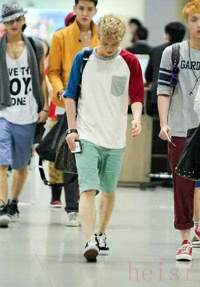 襪子露在外面也 OK,白色干凈的運動襪,瞬間一股韓潮風(fēng),褲子合身,就算身著一身黑,也能變成霸氣的男神歐巴!