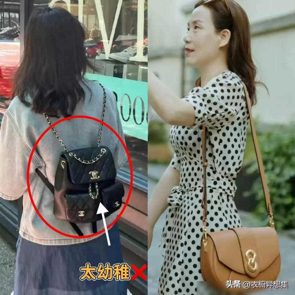 小女生背卡通雙肩包是可愛,你背同款就是“裝嫩”;年輕人背帆布雙肩包是青春,你背同款就是“沒氣質(zhì)”。對比單肩包、托特包的優(yōu)雅,雙肩包的“學(xué)生氣”太濃,和成熟女性的穿搭一搭,就像穿高跟鞋配運動鞋——怎么看都不協(xié)調(diào)。