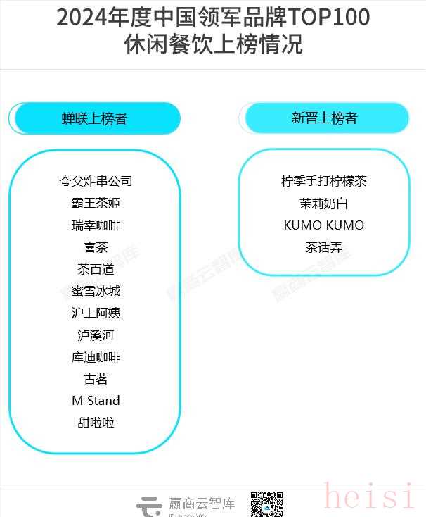 這個“平價時代”,以貴為策者終究是少數(shù)派,登上《2024中國領(lǐng)軍品牌TOP100》的服裝新秀更多還是以“性價比”出圈。松山棉店 全國360余家門店,主打?qū)儆跂|方松弛感的貼身衣物,品質(zhì)不輸優(yōu)衣庫、全棉時代,以相對更高性價比近年活躍在年輕人與一批家庭客群中。場景化功能服飾品牌 坦博爾 ,今年冬天“呼聲最高”的羽絨服之一,主產(chǎn)品價格千元以內(nèi),電商平臺銷量靠前的商品售價大多500元,10月初在17省同時開出140家新店。三、休閑餐飲:規(guī)模戰(zhàn)激烈,摘得“出海大戶”頭銜休閑餐飲是《2024中國領(lǐng)軍品牌TOP100》誕生千店以上規(guī)模者最多的品類,上榜品牌中“千店王”達11個?!安怀龊#统鼍帧钡膲毫ο?,卷價格、沖規(guī)模。同比2023年,今年上榜品牌數(shù)量減少8個,至16個;但蟬聯(lián)者有12個,在總榜各業(yè)態(tài)中占比最大。