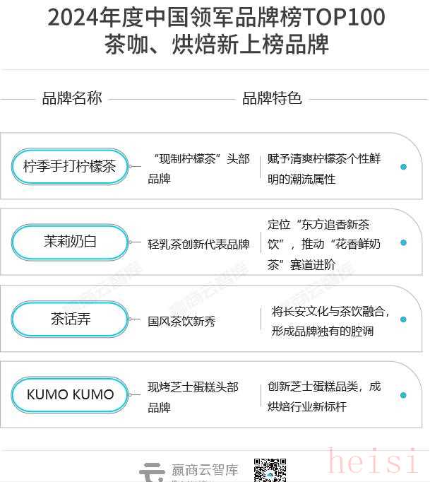 “茶飲界現(xiàn)象級品牌” 霸王茶姬 ,一年“超速狂奔”約3000家新店,勇闖上海時裝周、烏鎮(zhèn)戲劇節(jié)、巴黎奧運會,7周年慶線上吸引10萬人參與,今年GMV瞄準(zhǔn)200億元 (去年GMV逆勢突破百億) 。Q3營收創(chuàng)新高、門店突破兩萬家的 瑞幸咖啡 ,在巴西大手筆簽下百億咖啡豆訂單,化身動漫節(jié)、時尚盛典、運動賽事獨家合作伙伴,頻頻刷臉; 茶百道 出海外拓店、港股上市“兩手抓”; 滬上阿姨 升級品牌形象變“摩登貴婦”。新上榜的檸季手打檸檬茶、茉莉奶白、茶話弄,均是茶飲差異化定位的勝利者。專注手打檸檬茶的 檸季 今年新開千家新店,聚焦茉莉花茶的 茉莉奶白 獲阿里億元投資,深度綁定長安文化的 茶話弄 ,兩年在全國新開700多家店。