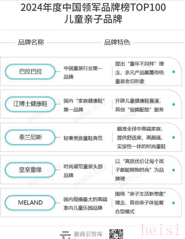 來自泉州的 皇室童緣 ,憑借高性價比的時尚童裝積累眾多消費者,今年以“每月新開數(shù)十家店”的速度瘋狂擴張,門店規(guī)模已超2000家;而“分階選鞋”概念逐漸完成“市場教育”,兒童健康鞋相關(guān)品牌連上2個—— 江博士健康鞋、泰蘭尼斯 。前者市場占有率進一步提升,后者接連上新“兒童版”丑鞋、滑板鞋、露營鞋、瑪麗珍鞋,時尚熱點一個不漏。兒童樂園發(fā)展多年,進入壁壘提高,真正落地寓教于樂的中高端品牌備受青睞?!皟和瘶穲@話題王” MELAND ,根據(jù)最新需求設(shè)置旗艦品牌meland club、親子餐廳meland cafe、運動品牌meland sport等多個店型,其中北京超級旗艦店斬獲A' DESIGN AWARD最高獎項·鉑金獎 (全球TOP3設(shè)計界大獎) ,創(chuàng)新力堪稱“國內(nèi)兒童樂園天花板”。通覽2024年度最火的這100個“領(lǐng)軍國貨”品牌,再次印證了商業(yè)世界最樸素的一個道理:只有用戶真正覺得好的商品、服務(wù),才有絕對的生命力,才能穿越風(fēng)暴、穿越周期,抵達領(lǐng)軍之位。聯(lián)合出品丨贏商網(wǎng)&中城研究院撰文丨付慶榮 徐娜數(shù)據(jù)支持丨贏商大數(shù)據(jù)榜單測評丨唐澤強 何小麗品牌圖片來源丨品牌官方渠道· end ·贏商云智庫原創(chuàng)稿件,如需轉(zhuǎn)載請告知用 數(shù) 據(jù) 說 話,讓 商 業(yè) 好 玩