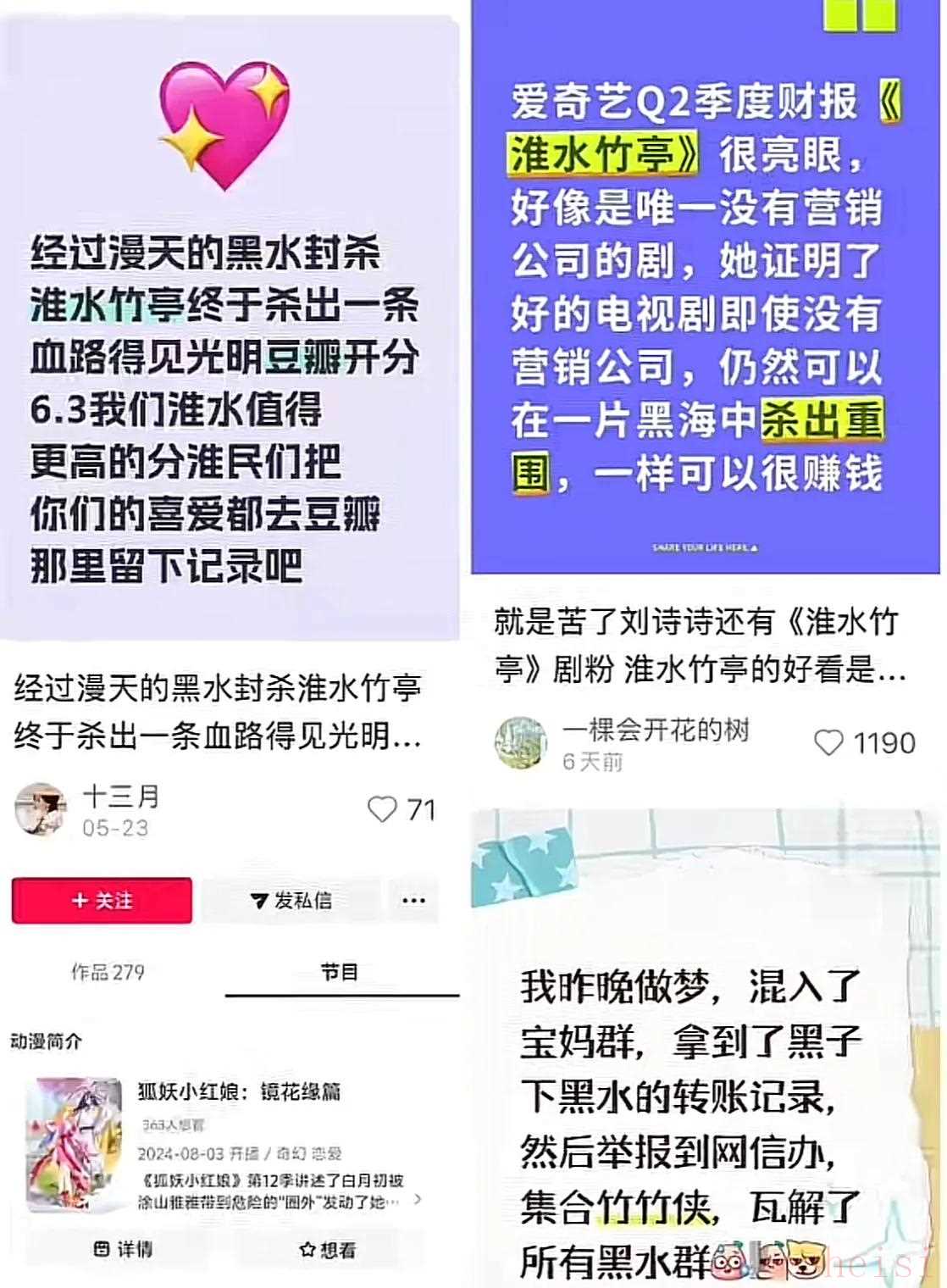 回顧之前的黑水,無論大v還是網(wǎng)友發(fā)點紅稿都會被強行閉麥,逆反的劇粉們只能退到小小桃花源來買卡牌磕磕群像。