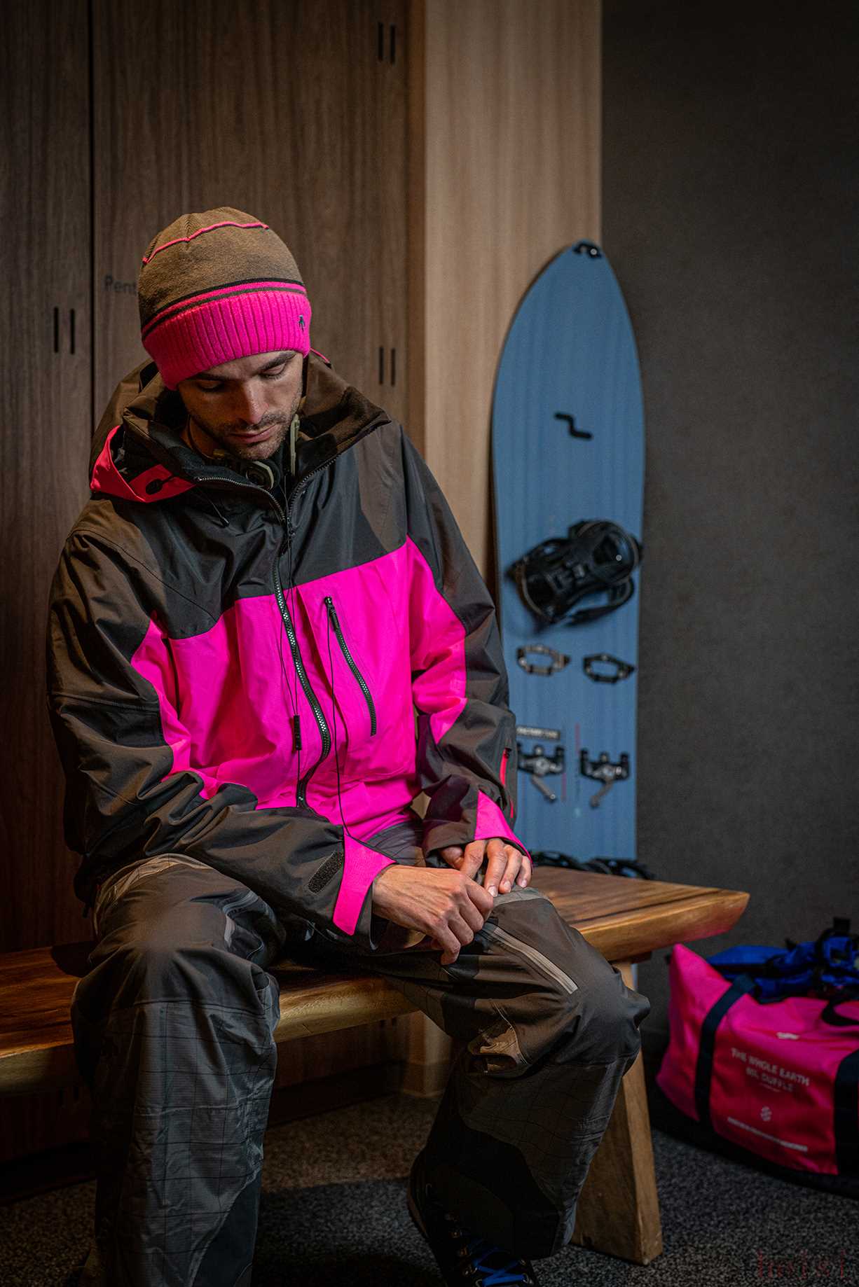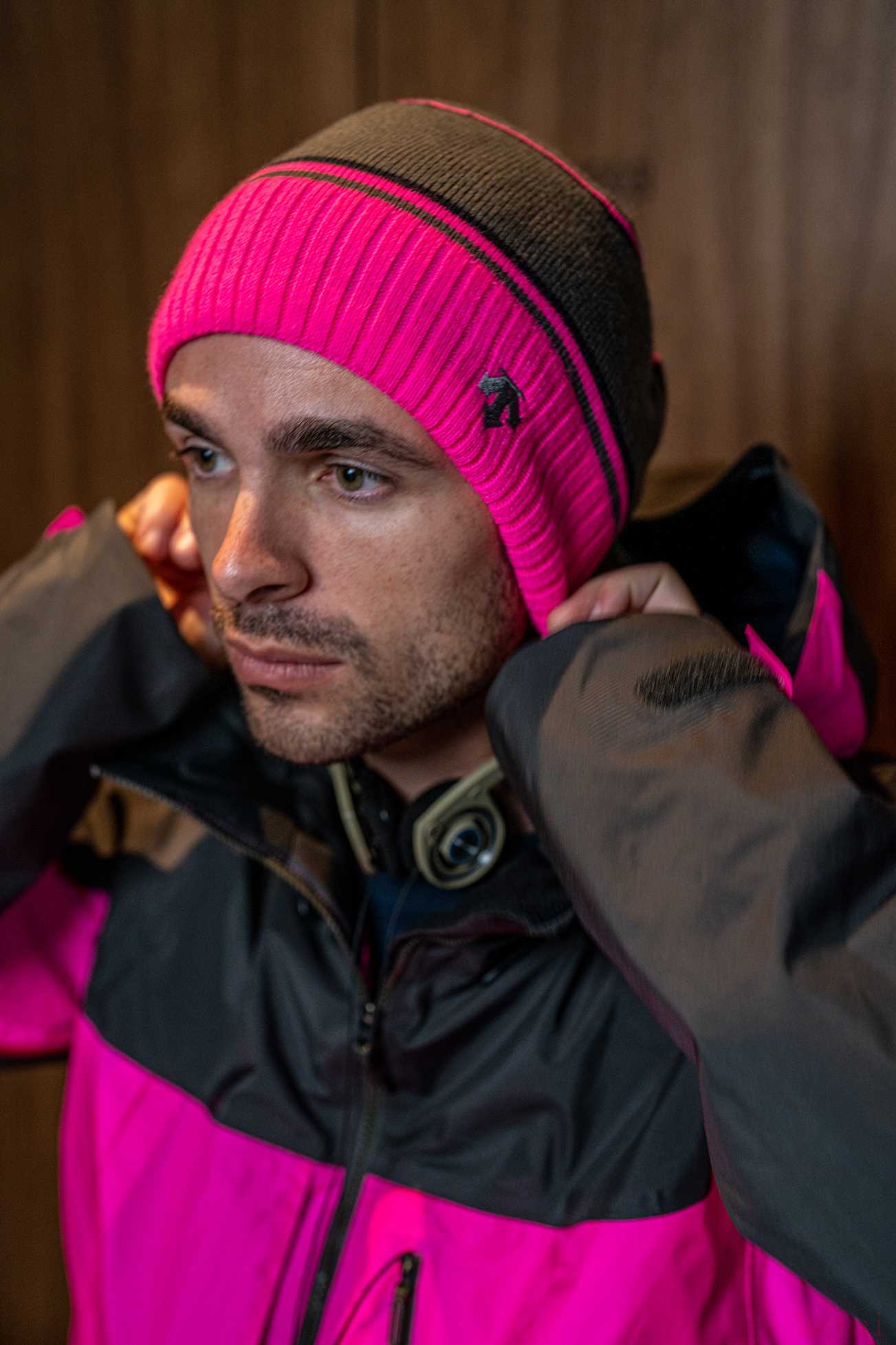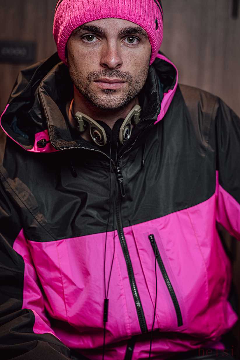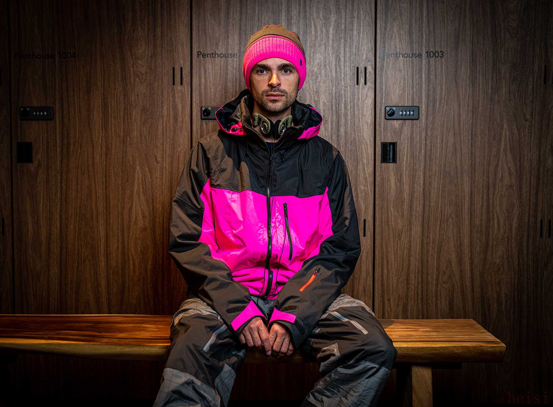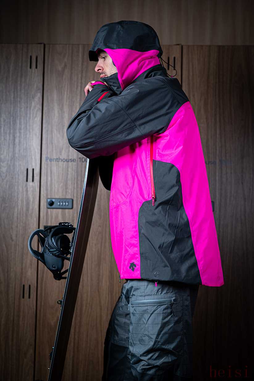 在這個(gè)系列中,我希望設(shè)計(jì)一款可以同時(shí)滿足自由式滑雪和越野滑雪需求的滑雪服,這就意味著既要有好的版型,又能應(yīng)對(duì)極端天氣環(huán)境,在滑雪場(chǎng)的穿著場(chǎng)景中,也要有最好的表現(xiàn),帶給普通滑雪者最舒適的穿著體驗(yàn)。在這個(gè)大前提下,我選擇了亮眼的配色,這出于讓越野滑雪者在野外遭遇事故時(shí)更容易被發(fā)現(xiàn)的考量。而且,正因?yàn)檫@是首個(gè)雪季系列,我也希望以這種亮眼的配色,讓大家更容易地理解它的使用場(chǎng)景。粉色是我當(dāng)時(shí)憑感覺(jué)選擇的顏色,在以后的系列中,我會(huì)繼續(xù)采用熒光色這樣的鮮艷色系。對(duì)于在滑雪場(chǎng)里的普通滑雪者來(lái)說(shuō),遭遇風(fēng)雪天氣,在能見(jiàn)度很低的環(huán)境中也容易被發(fā)現(xiàn),這一點(diǎn)是非常實(shí)用的。