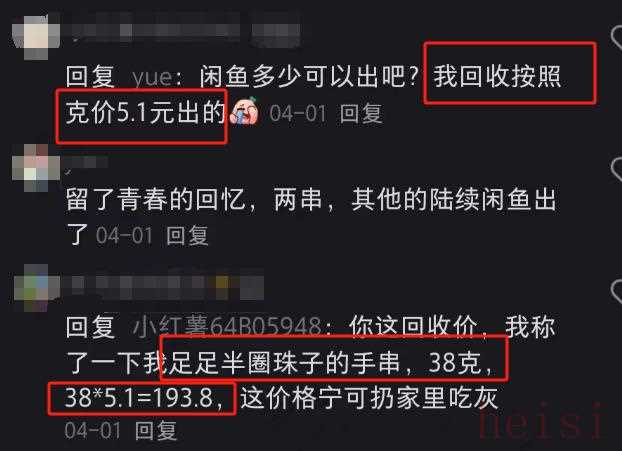 就連10元/克的價(jià)格都有網(wǎng)友表示賣不到這么多錢,按照當(dāng)時(shí)5.1元的克價(jià)出,自己當(dāng)時(shí)花了幾千元的半圈珠子潘多拉手串,只值193元。