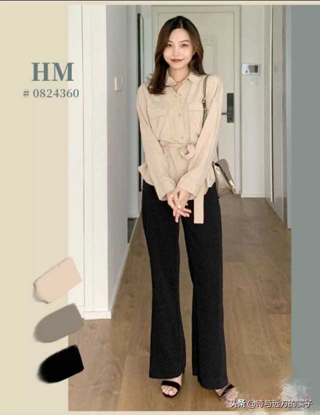 HM這一套穿搭騙子我覺(jué)得頁(yè)超好看,特別適合夏末秋初得時(shí)候,賊顯氣質(zhì),裸色襯衫與黑色闊腿褲的組合,太優(yōu)雅了
