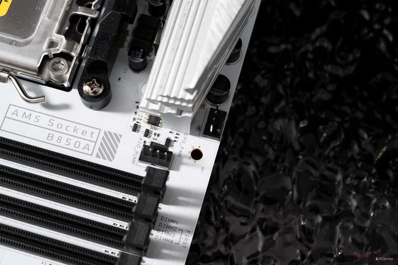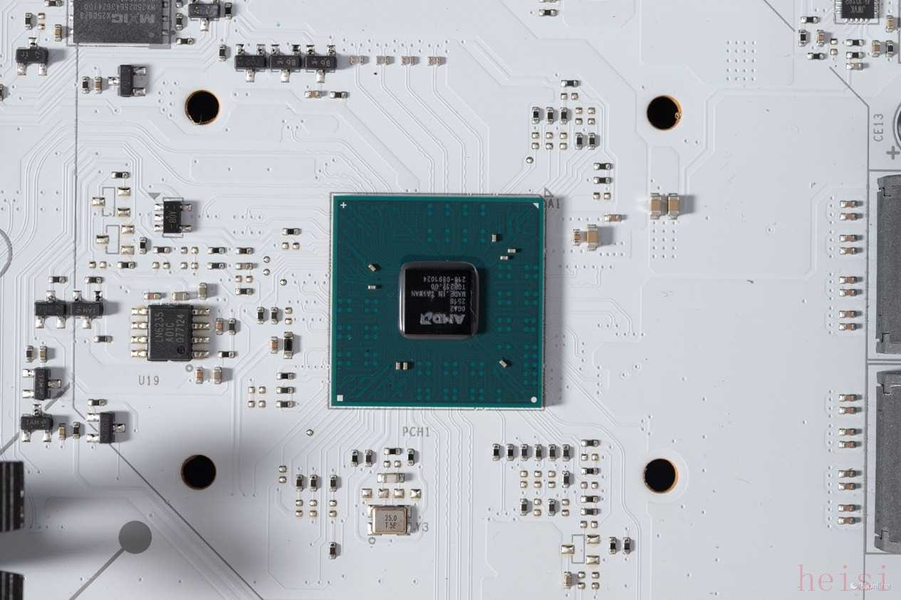 卸下外面的裝甲以后就能看到B850芯片了,其主要負責(zé)I/O接口等一些外設(shè)接口的控制及提供部分PCIe通道。