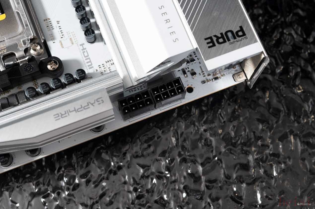 再來看看這款主板的供電配置,從下圖就可以看出藍寶石PURE極地B850A WIFI主板配備12+2+1相數(shù)字供電。其中CPU核心供電為12相、核顯供電為2相,還有1相則是AUX供電。