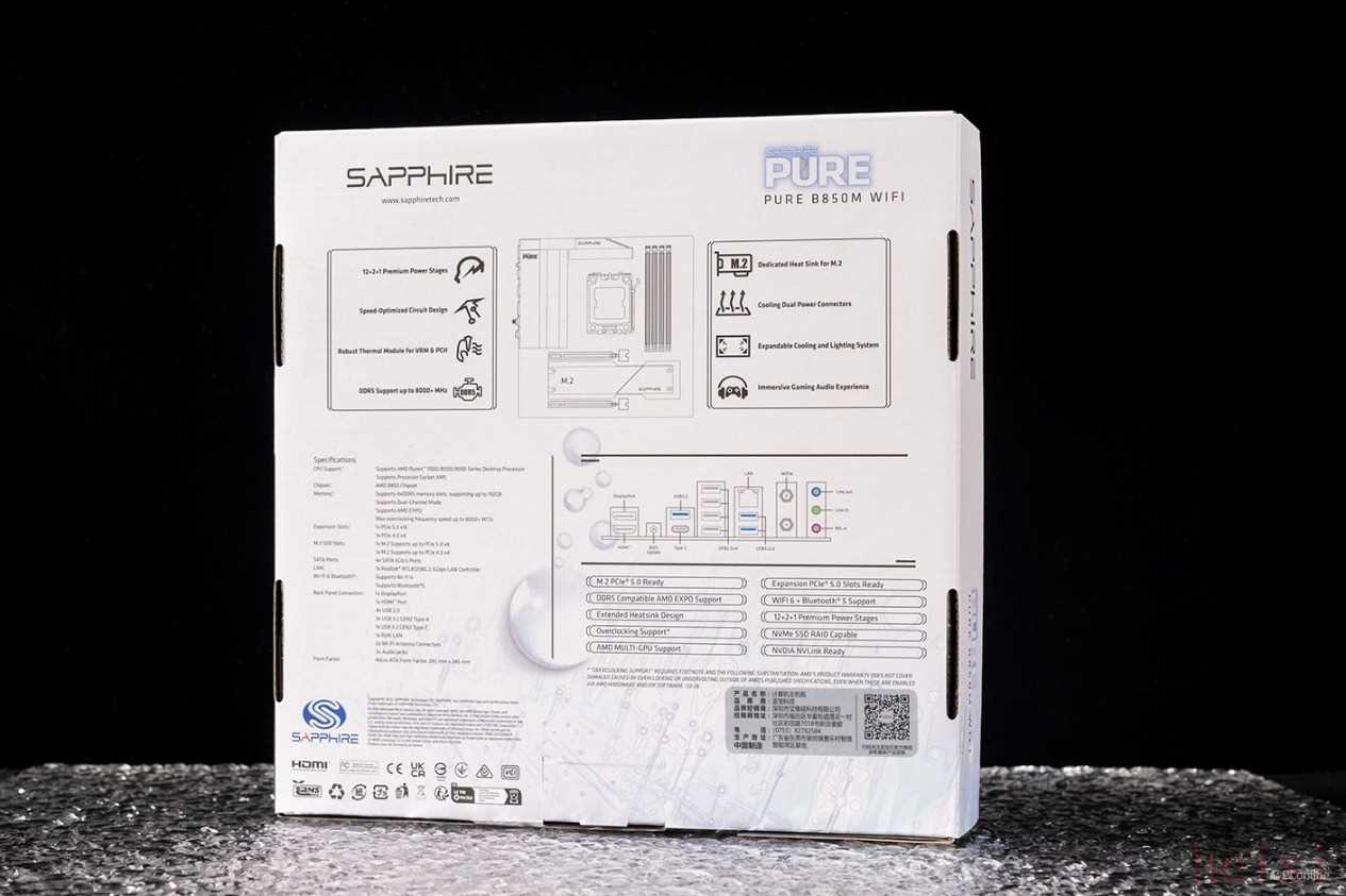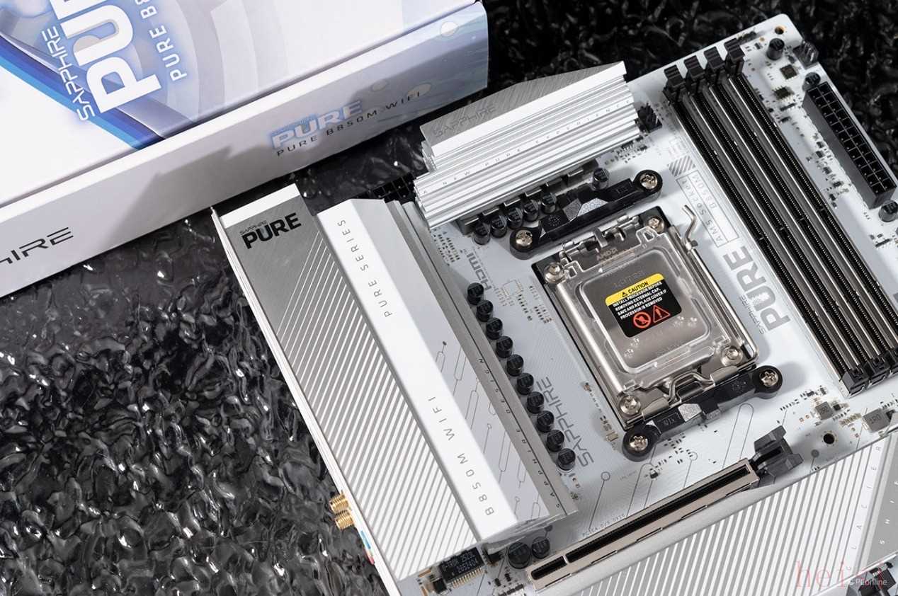 看過了藍寶石PURE極地B850A WIFI主板,我們再來看看此次PURE極地家族的另一位成員——藍寶石PURE極地B850M WIFI主板。