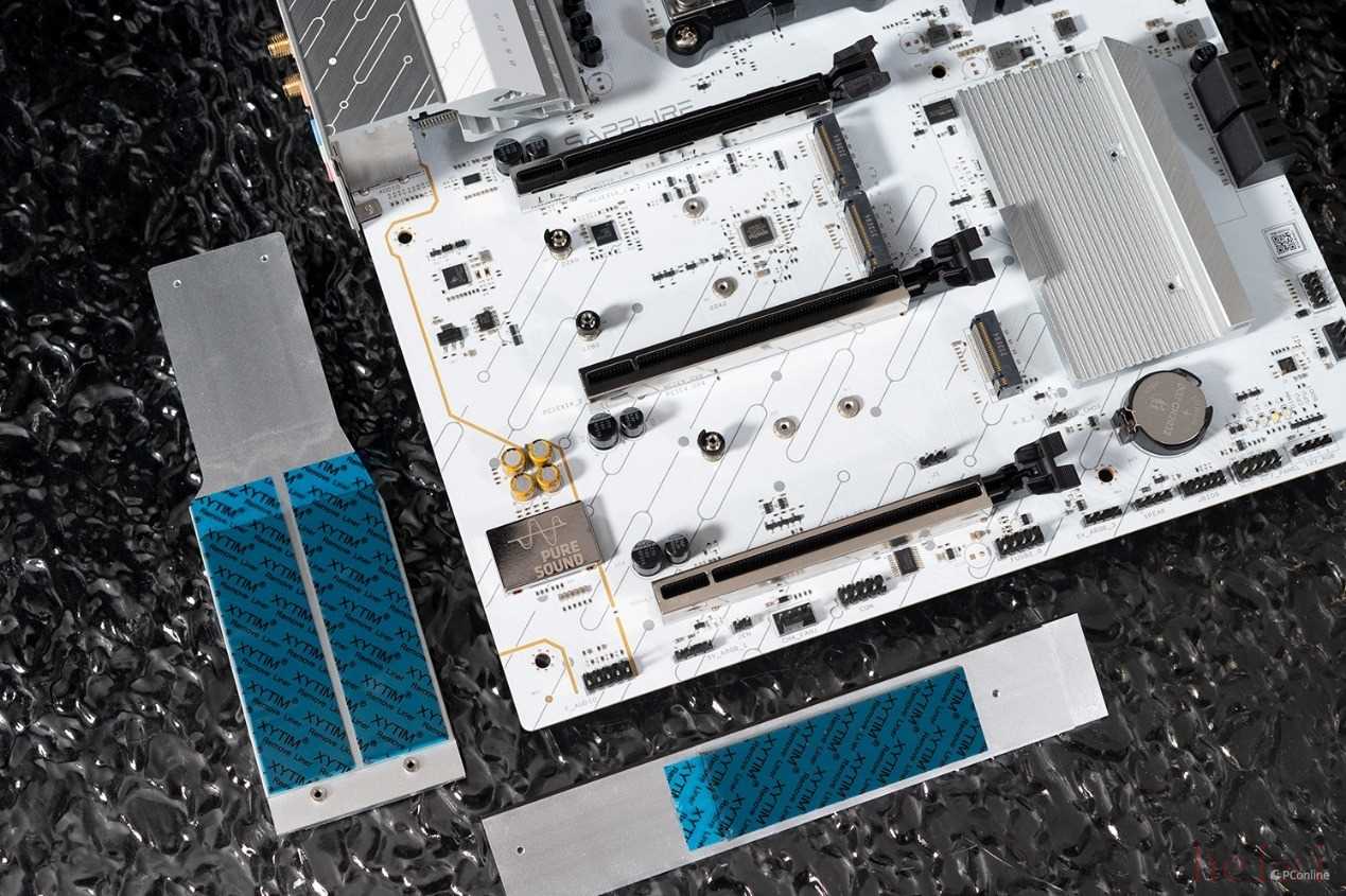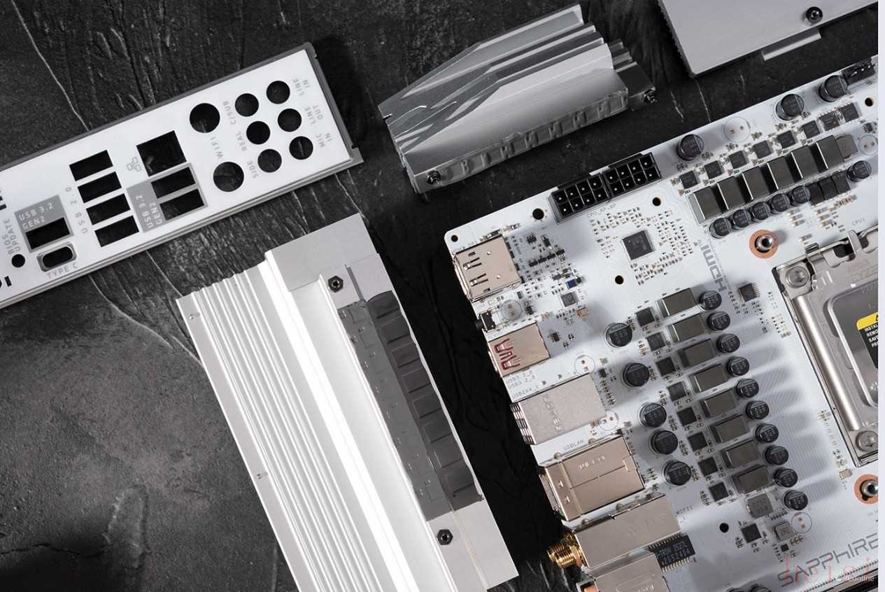 藍寶石PURE極地B850A WIFI主板最搶眼的應(yīng)該就是這個銀白色的散熱裝甲了,這款主板的散熱裝甲采用分體設(shè)計,面積都非常大,其中左側(cè)的散熱馬甲更是延伸到了IO擋板位置,做成了全覆蓋的設(shè)計。