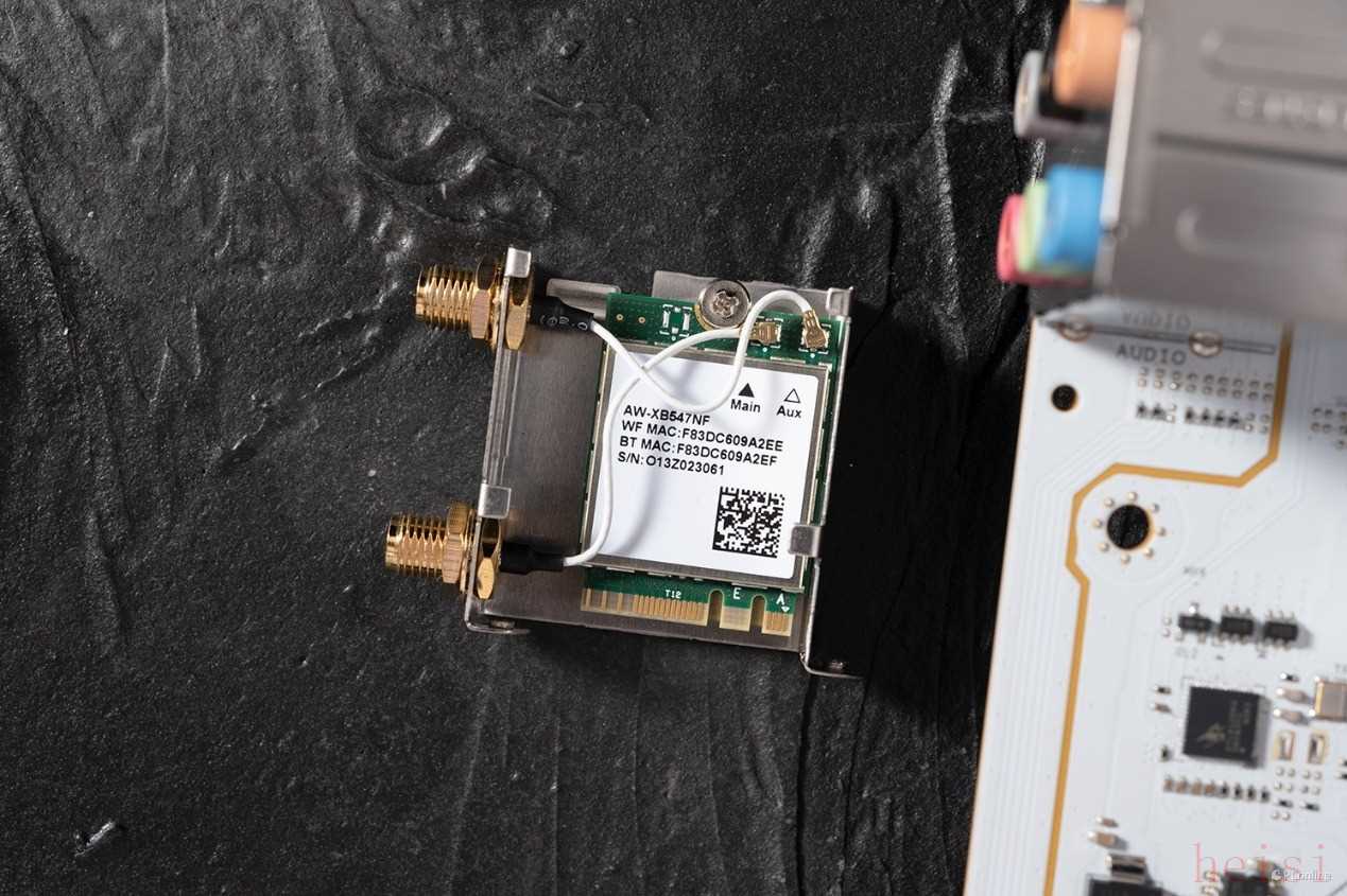 拆開擋板還可以看到其無線網(wǎng)卡配置,是來自Realtek瑞昱的RTL8852BE無線組網(wǎng)方案(型號AW-XB547NF),具備2T2R MIMO功能,提供高達1200Mbps的最高速度,并且支持WiFi6傳輸速率以及藍牙5無線傳輸技術(shù)。