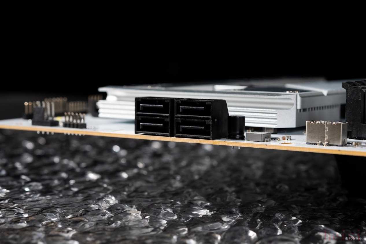 另外,主板側(cè)邊還有4個SATA接口,兼容舊的存儲設(shè)備接口,包括機械硬盤,以及光驅(qū)產(chǎn)品等,最高支持6Gbps的傳輸速度。
